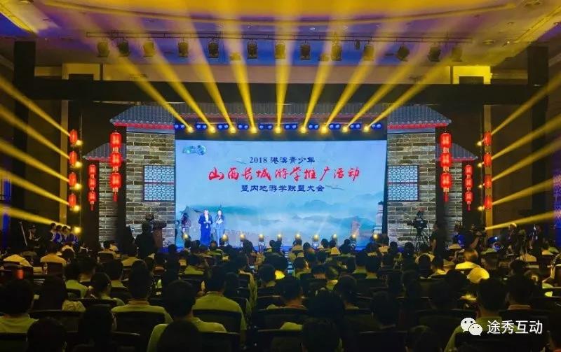 途秀互动助力山西游学大会,3D全息演绎《登鹳雀楼》惊艳全场!为扩大内地与港澳地区青少年友好交流,培育和拓展青少年游学市场,7月28日,2018港澳青少年山西长城游学推广活动暨内地游学联盟大会在山西太原举办。
